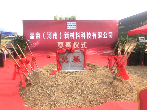 2021年6月11日,備受矚目的雷帝河南新工廠奠基儀式在河南隆重舉行。本次雷帝再次啟程成立雷帝(河南)新材料科技有限公司,總占地面積6000平方,初期構建干粉生產(chǎn)線2條,規(guī)劃干粉年產(chǎn)能15萬噸。