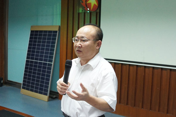 五星公司董事長(zhǎng)胡廣良首先與大家分享了國(guó)家能源局下發(fā)的《關(guān)于報(bào)送整縣(市、區(qū))屋頂分布式光伏開(kāi)發(fā)試點(diǎn)方案的通知》文件精神。胡董告訴大家,國(guó)家能源局文件中已明確,黨政機(jī)關(guān)建筑屋頂總面積可安裝光伏發(fā)電比例不低于50%;學(xué)校、醫(yī)院、村委會(huì)等公共建筑屋頂總面積可安裝光伏發(fā)電比例不低于40%;工商業(yè)廠房屋頂總面積可安裝光伏發(fā)電比例不低于30%;農(nóng)村居民屋頂總面積可安裝光伏發(fā)電比例不低于20%。光伏迎來(lái)了歷史性的大發(fā)展機(jī)遇,面對(duì)新的機(jī)遇和挑戰(zhàn),我們應(yīng)牢牢抓住機(jī)遇,迎難而上,憑借自身的技術(shù)、生產(chǎn)、工程、服務(wù)優(yōu)勢(shì),投資建設(shè)出更多、更優(yōu)質(zhì)的光伏電站。