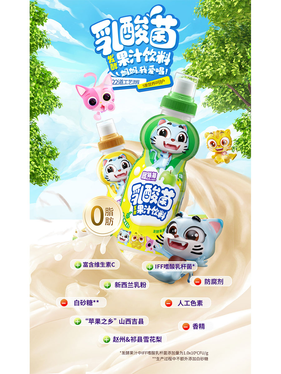 主要產(chǎn)品:哆貓貓乳酸菌果汁飲料、兒童果凍吸吸樂(lè)、兒童奶巧、嬰幼兒標(biāo)準(zhǔn)類產(chǎn)品
