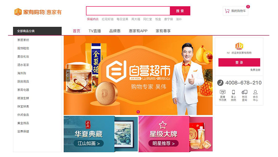 主要產(chǎn)品:家居用品、家用電器、服裝鞋帽、食品、美妝、珠寶首飾、收藏品、運(yùn)動(dòng)健康用品、家紡用品等產(chǎn)品