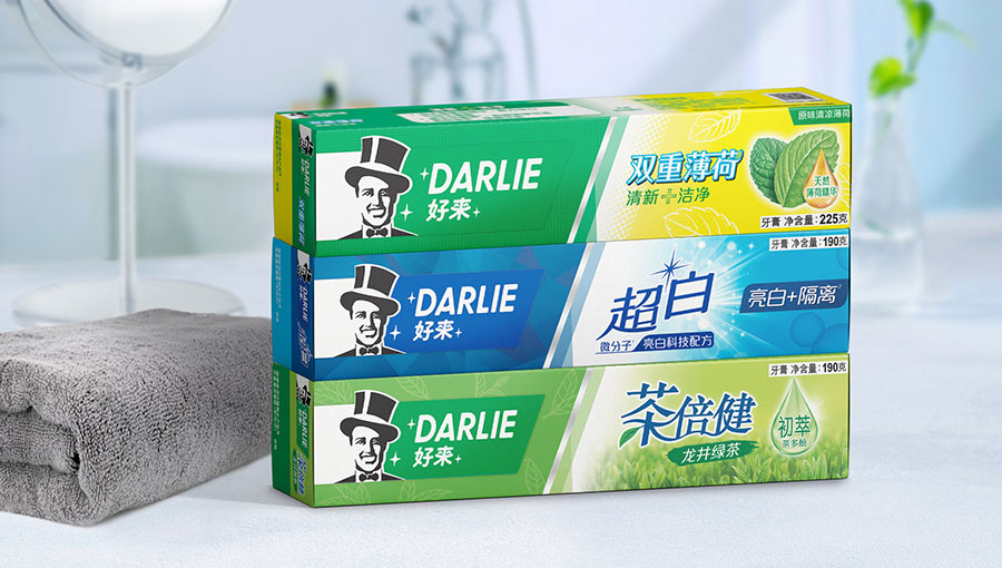 目前DARLIE好來牙膏共有數(shù)十個(gè)品種、多種規(guī)格(18g-250g),其中銷往中國大陸市場包括經(jīng)典的雙重薄荷系列、茶倍健系列、超白系列、專研護(hù)齦系列、抗敏感系列、透心爽系列,兒童牙膏系列及新增了白.酵素系列和星耀白系列等20個(gè)品種,另外還有多個(gè)品種同時(shí)銷往新加坡、馬來西亞、泰國、中國香港和中國臺灣等市場。