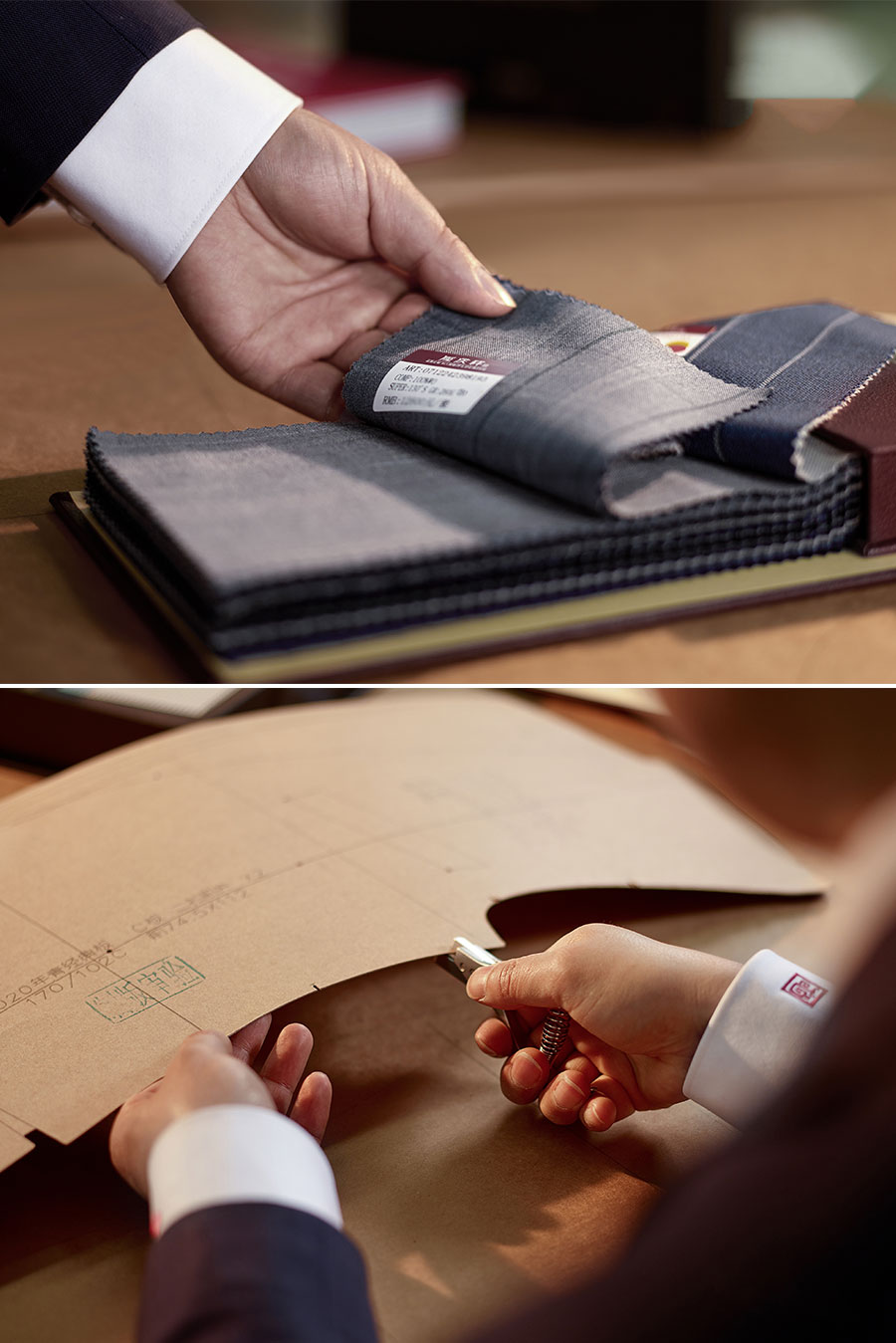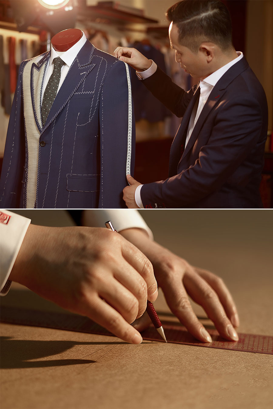 隆慶祥以量身定制為核心特色,提供從面料選擇、款式設(shè)計(jì)到工藝優(yōu)化、售后服務(wù)的全程服務(wù),產(chǎn)品均為“單人單版、單版單裁、單裁單做”,以獨(dú)一無(wú)二的專屬性彰顯尊貴榮耀。每套西裝定面料、定款式、制版、裁剪、制作、試樣、后道整理、取件共八道工序,均采用406道工序,而且大量工序是手工制作。產(chǎn)品均“單人單版、單版單裁、單裁單做”,以獨(dú)一無(wú)二的專屬性彰顯尊貴榮耀。