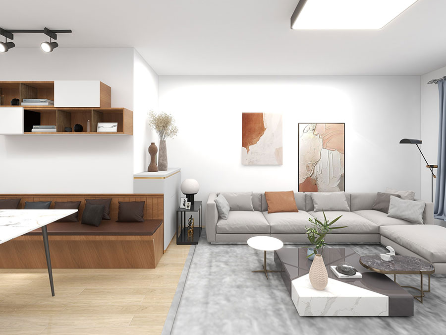 潮流設計,1v1服務:全包圓設計師為業(yè)主量身定制自由、開放、個性化的設計方案,規(guī)劃房屋格局和收納,督導施工,軟裝搭配,最終實現(xiàn)方案一比一落地,打造客戶滿意新家。