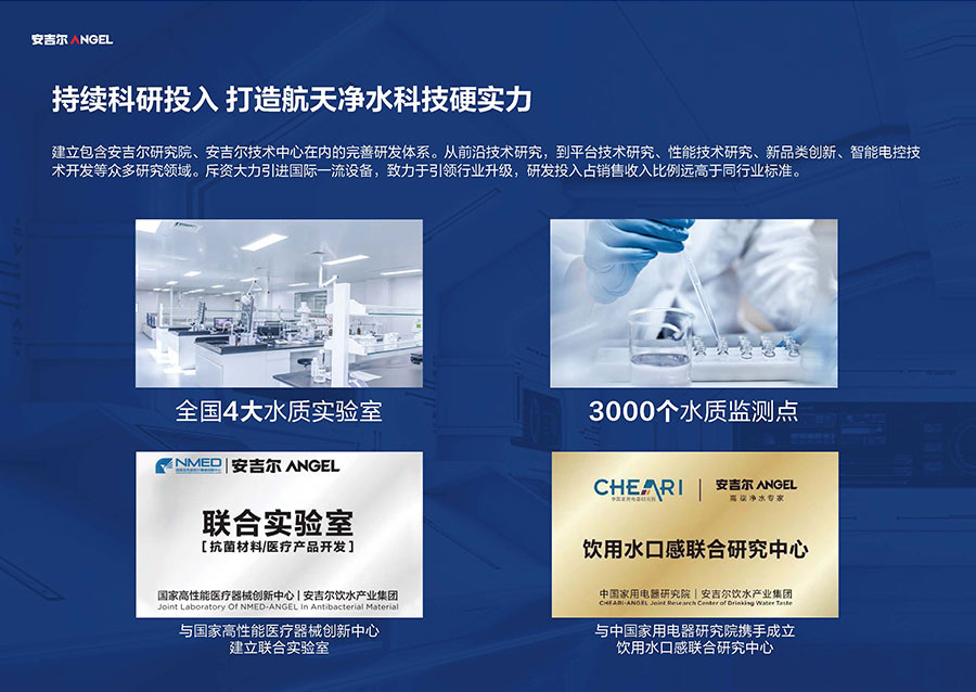 37年來,安吉爾始終堅持科技創(chuàng)新,不斷引領行業(yè)技術升級。參與17項國家及行業(yè)標準制修訂,累計獲得900余項專利,建立4大水質(zhì)實驗室。2023年,安吉爾憑實力斬獲全球9項發(fā)明獎,包含3項日內(nèi)瓦國際發(fā)明展獎項,6項亞洲創(chuàng)新發(fā)明展獎項。