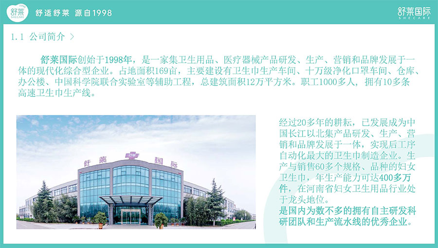 主要產(chǎn)品:舒萊、凸凸棉衛(wèi)生巾、衛(wèi)生護(hù)墊、安睡褲(女性衛(wèi)生褲)