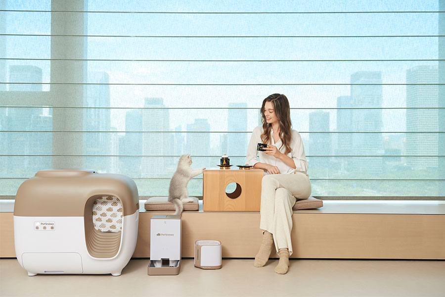 主要產(chǎn)品:PetSnowy糯雪智能全自動(dòng)貓砂盆、烘干箱、智能飲水機(jī)、智能喂食器、空氣凈化器、儲糧桶等多品類寵物智能用品