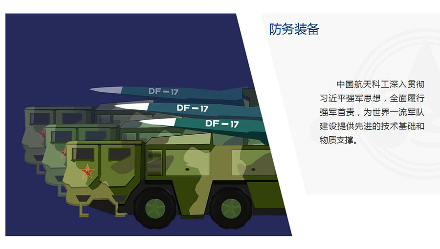 中國航天科工積極適應世界軍事發(fā)展趨勢和我軍軍事斗爭準備急需,深入貫徹習近平強軍思想,貫徹新時代軍事戰(zhàn)略方針,聚焦如期實現(xiàn)建軍一百年奮斗目標,著眼復雜戰(zhàn)場環(huán)境下的作戰(zhàn)需求,加速戰(zhàn)略性、前沿性、顛覆性技術創(chuàng)新,加速武器裝備升級換代和智能化武器裝備發(fā)展,推動科研生產能力不斷增強、新型導彈武器不斷涌現(xiàn)、裝備科研生產體系更加完整,為人民軍隊捍衛(wèi)國家主權、安全、發(fā)展利益提供先進的技術基礎、物質保障和強有力的導彈武器裝備戰(zhàn)略支撐。