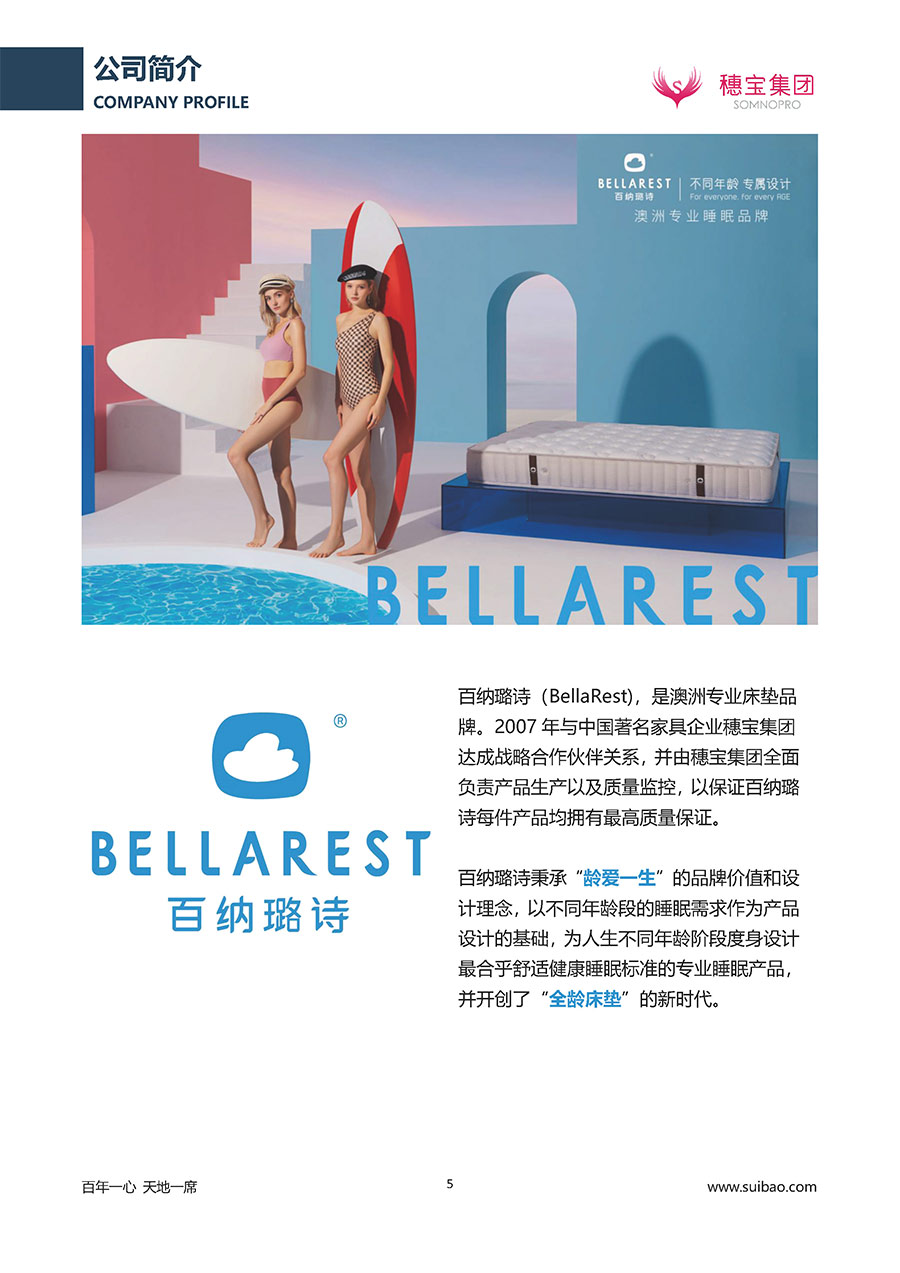 半個世紀的付出,穗寶集團在深度睡眠領(lǐng)域收獲非凡成就,贏得業(yè)界與社會的一致贊譽。作為大家居行業(yè)的品質(zhì)倡導(dǎo)者,穗寶集團不斷創(chuàng)新,豐富品牌實力,致力推動中國床墊產(chǎn)業(yè)發(fā)展。至今,穗寶集團旗下?lián)碛卸鄠€來自世界各地的優(yōu)質(zhì)品牌,包括:穗寶、詩貝艾爾、百納璐詩、睡客小鎮(zhèn)、Mr.Z早先生等;此外,穗寶集團從世界各地甄選適合不同消費者的優(yōu)質(zhì)睡眠產(chǎn)品,定制屬于您的睡眠空間。如今,穗寶集團形成以研發(fā)、生產(chǎn)和銷售床墊為主營業(yè)務(wù),涉及家具、家居裝飾、酒店配套等多項業(yè)務(wù)的企業(yè)群體。