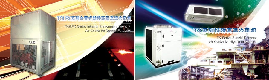 公司的產(chǎn)品具有耐高溫、抗震動、防粉塵、結(jié)構(gòu)新穎堅固、噪聲低、換熱效率高和維護(hù)保養(yǎng)方便等特點(diǎn)。產(chǎn)品廣泛用于高溫作業(yè)區(qū)域?qū)υO(shè)備或操作工人的降溫,如起重機(jī)械、焦?fàn)t四大機(jī)車、裝載機(jī)械等電氣艙、駕駛室、電器房、液壓房、電腦操作房、高溫操作室、休息室中的應(yīng)用。