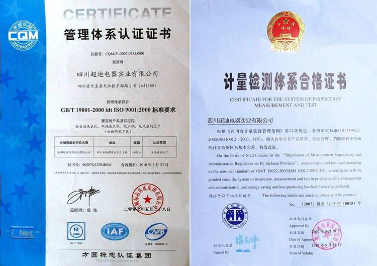 四川超迪電器實業(yè)有限公司是一家集研發(fā)、制造、注塑、總裝、營銷、售后為一體的跨地域性的集團公司。公司通過十幾年的奮斗,現(xiàn)已建立、健全了“西點軍校”模式的企業(yè)管理體系。在產(chǎn)品標(biāo)準體系方面,先后通過了ISO9001質(zhì)量管理體系認證、ISO14000環(huán)境體系認證、OHSAS18000職業(yè)安全健康管理體系認證,是國際標(biāo)準采樣單位,是采用國際標(biāo)準認可合格企業(yè),產(chǎn)品全部通過了中國質(zhì)量認證中心認證,取得了國家強制認證3C證書。在噪聲能效標(biāo)準上,通過了質(zhì)量監(jiān)督檢驗站檢測。在榮譽方面,公司生產(chǎn)的洗衣機獲得了“國家免檢產(chǎn)品”證書,連續(xù)三屆獲得“四川名牌產(chǎn)品”證書,獲得了“四川省著名商標(biāo)”證書等各項榮譽。在產(chǎn)品保障方面,辦理由中國人民保險公司對產(chǎn)品的全程保險。