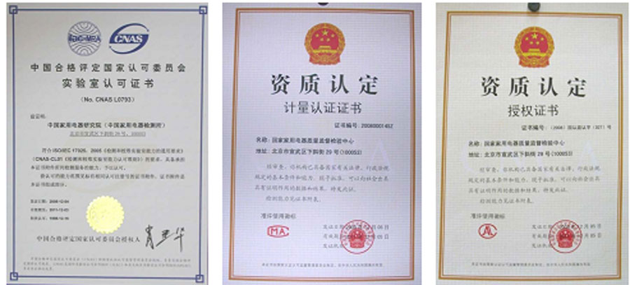 國家家用電器質(zhì)量監(jiān)督檢驗(yàn)中心(中國家用電器檢測所)是我國最早獲得依據(jù)國際實(shí)驗(yàn)室管理標(biāo)準(zhǔn)認(rèn)可的實(shí)驗(yàn)室之一;是中國國家認(rèn)證認(rèn)可監(jiān)督管理委員會指定的強(qiáng)制性產(chǎn)品認(rèn)證檢測機(jī)構(gòu);是中國質(zhì)量認(rèn)證中心、中國環(huán)境標(biāo)志認(rèn)證中心、中國方圓標(biāo)志認(rèn)證中心、北京中輕聯(lián)認(rèn)證中心、中國消費(fèi)者協(xié)會、北京市消費(fèi)者協(xié)會的簽約實(shí)驗(yàn)室;獲香港機(jī)電署EMSD認(rèn)可核證團(tuán)體資格。