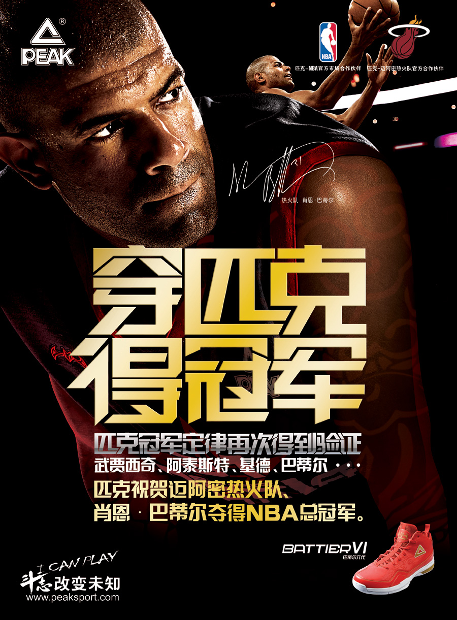 品牌國際化:2005年,匹克全面加速“品牌國際化”戰(zhàn)略,先后通過贊助歐洲籃球全明星賽、斯坦科維奇杯洲際籃球賽等國際一流賽事,攜手休斯頓火箭隊(duì)、邁阿密熱火隊(duì)等頂級NBA球隊(duì),結(jié)盟NBA、FIBA、WTA等頂級國際賽事組織,簽約巴蒂爾、基德等20多位NBA頂級球星以及格沃特索娃等9位網(wǎng)球明星,支持伊拉克、新西蘭等10多個(gè)國家隊(duì)和國家奧委會,一舉成為中國體育品牌中,國際資源最豐富的國際化運(yùn)動(dòng)品牌。