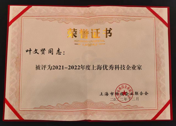 12月8日,上??沦惖滤辜用朗图瘓F(tuán)有限公司董事長(zhǎng)葉文賢被授予“上海市優(yōu)秀科技企業(yè)家”稱號(hào)。這是在全國(guó)疫情防控新形勢(shì)下,對(duì)葉文賢同志直面經(jīng)濟(jì)大環(huán)境的挑戰(zhàn),堅(jiān)持科技創(chuàng)新、堅(jiān)持實(shí)業(yè)興企、堅(jiān)持多品牌運(yùn)作取得顯著成效的肯定。
