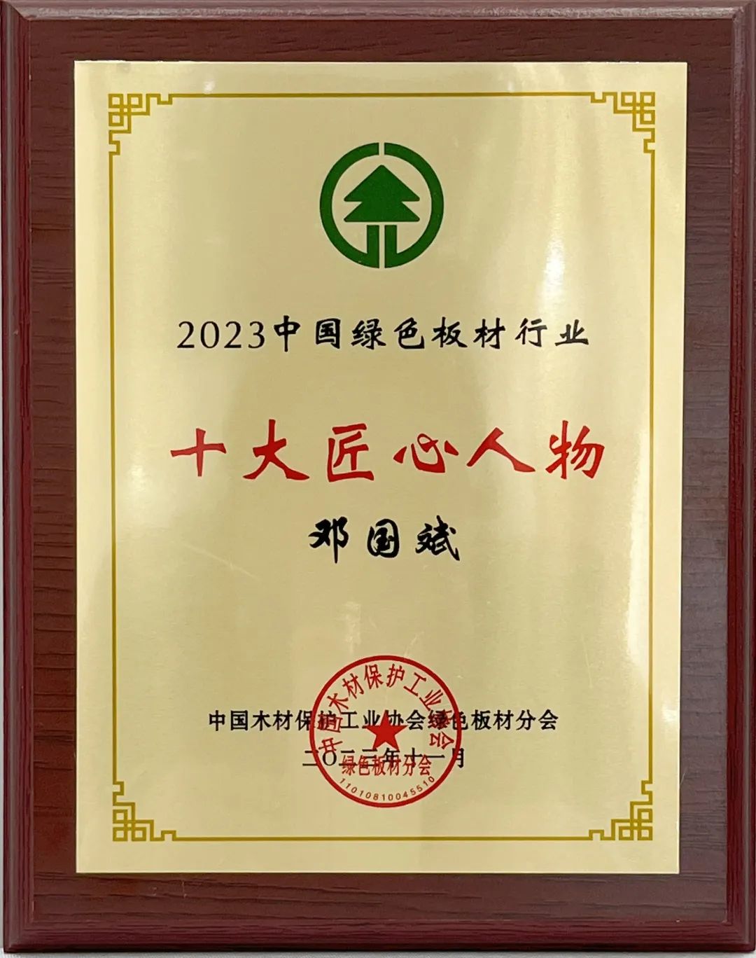 此外,憑借持續(xù)在環(huán)保型裝飾材料的研發(fā)和推廣上的領(lǐng)先優(yōu)勢,福漢木業(yè)還榮獲了“2023年中國綠色板材品牌十強企業(yè)”“2023年中國綠色板材行業(yè)十大匠心人物”兩項榮譽。