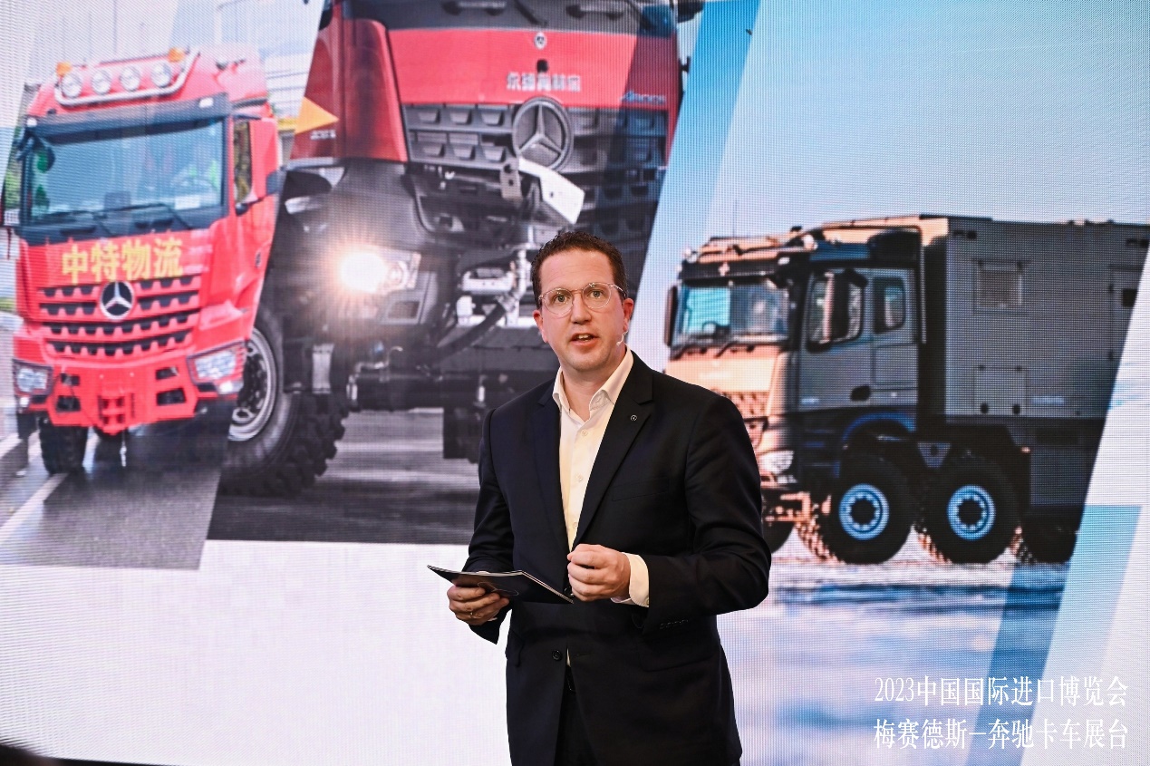 秦坦介紹首次亮相的梅賽德斯-奔馳進(jìn)口卡車(chē)全系產(chǎn)品