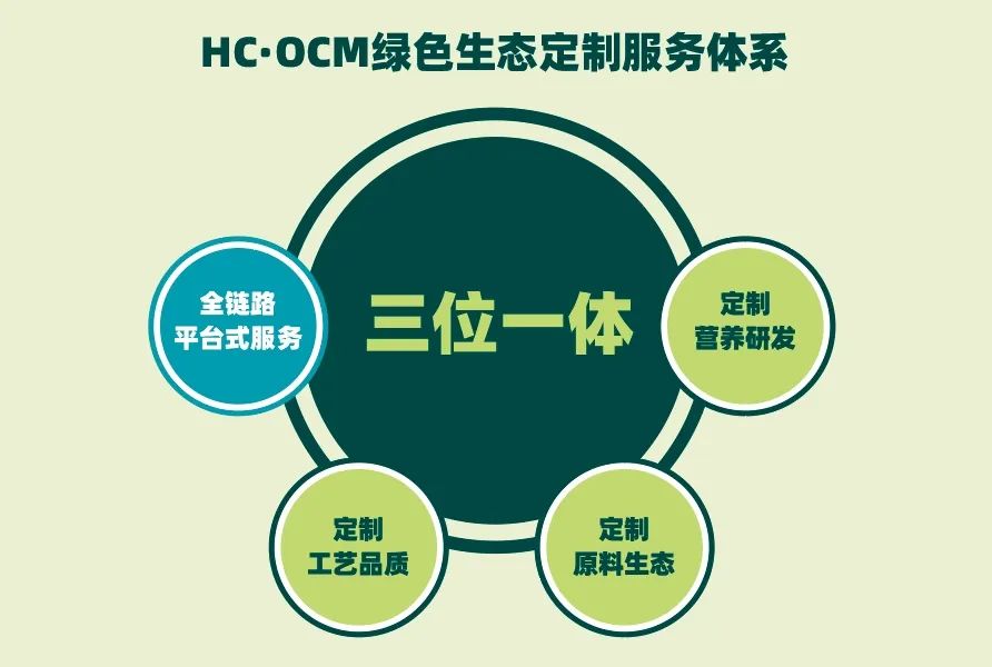 海辰有機不止提供基礎(chǔ)的OEM代工服務(wù),更從品牌客戶的市場人群、寵物營養(yǎng)、產(chǎn)品功能三大需求入手,全力打造定制配方研發(fā)、定制生態(tài)原料、定制生產(chǎn)工藝、全鏈路平臺式服務(wù)四大方面在內(nèi)的HC·OCM綠色生態(tài)定制服務(wù)體系,為合作品牌的成長提供強有力支撐。