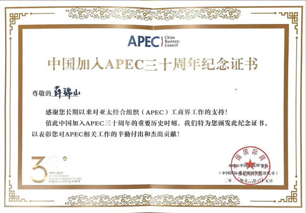 至今已得到逾60國(guó)政要貴賓青睞與認(rèn)可,擔(dān)當(dāng)著傳遞中國(guó)特色大國(guó)外交理念的茶文化使者,薛錦山于2021年獲得中國(guó)加入APEC三十周年紀(jì)念證書(shū),于2022年被授予新時(shí)代中國(guó)經(jīng)濟(jì)創(chuàng)新人物榮譽(yù)稱號(hào)。