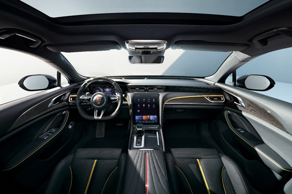 在內(nèi)飾設(shè)計(jì)方面,紅旗H6以“環(huán)懸科技”概念,采用流動(dòng)輕盈的整體架構(gòu),為駕乘者帶來(lái)尊貴體驗(yàn)。超大中控豎屏、“金盞黃+黑色”內(nèi)飾、“真皮+碳纖維”方向盤(pán)、運(yùn)動(dòng)座椅、全液晶儀表盤(pán)、精致簡(jiǎn)潔的門(mén)板和飾條設(shè)計(jì),在傳承家族“中軸式布局”的基礎(chǔ)上,呈現(xiàn)出兼具豪華尊享、智慧科技、激情動(dòng)感的風(fēng)尚氣息。
