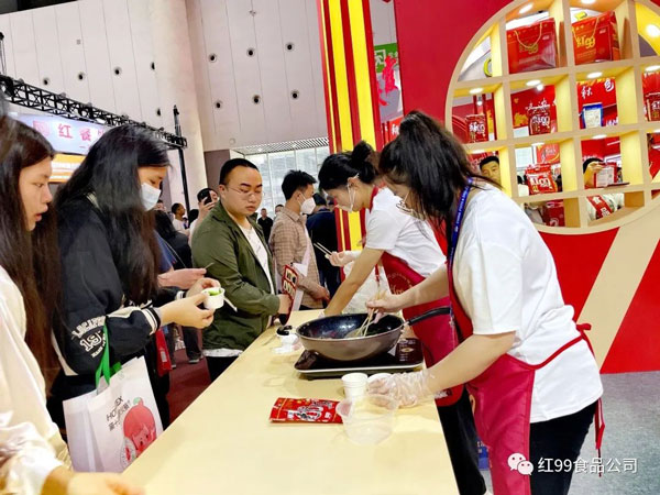 在紅九九品牌服務(wù)商-重慶貓頭鷹科技公司展區(qū),工作人員現(xiàn)場(chǎng)展示并詳細(xì)說明具體操作流程,只需兩步就能享用地道重慶火鍋。省時(shí)、省事、省心、方便、快捷是它的優(yōu)點(diǎn);同時(shí),紅99牌濃縮火鍋底料更是眾多家庭、餐廳、火鍋餐館、酒店選擇的方便型調(diào)味料,也是饋贈(zèng)親友之佳品。希望可以將這份美味分享給全國(guó)乃至全世界的朋友們,即使在他鄉(xiāng)也能吃到正宗的重慶火鍋。