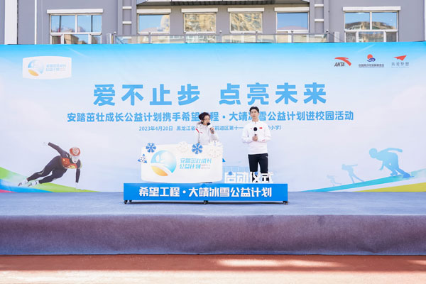 2023年4月20日,安踏茁壯成長公益計劃攜手希望工程·大靖冰雪公益計劃進(jìn)校園啟動儀式,在黑龍江省佳木斯市前進(jìn)區(qū)第十一小學(xué)(下簡稱十一小學(xué))舉行。通過體教融合,深耕青少年體育公益,發(fā)展冰雪運(yùn)動,為青少年茁壯成長賦能。安踏集團(tuán)為十一小學(xué)全體師生捐贈了安踏裝備包,捐建了武大靖-安踏夢想中心,體育教師接受了安踏體育課教師培訓(xùn)。短道速滑奧運(yùn)冠軍武大靖重返兒時母校,分享冠軍故事,首次推出大靖冰雪課。安踏集團(tuán)執(zhí)行董事、聯(lián)席CEO吳永華,安踏集團(tuán)副總裁李玲,共青團(tuán)黑龍江省委書記徐長勇,黑龍江省佳木斯市委副書記、代市長王鐵,上海真愛夢想公益基金會理事長潘江雪,共同出席活動,央視頻進(jìn)行了全程直播。