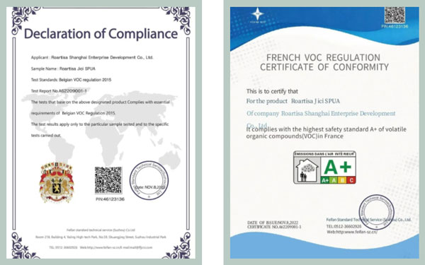 皇氏工匠美縫產(chǎn)品擁有非常全的環(huán)保檢測(cè)項(xiàng)目,不僅通過國(guó)內(nèi)數(shù)項(xiàng)權(quán)威環(huán)保檢測(cè),還獲得了多項(xiàng)國(guó)際環(huán)保認(rèn)證,包括法國(guó)A+認(rèn)證、比利時(shí)皇家認(rèn)證、德國(guó)AgBB等。