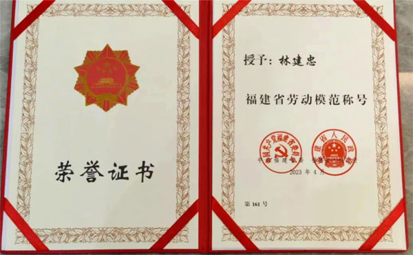 海佳集團(tuán)董事長(zhǎng)林建忠被授予“福建省勞動(dòng)模范”榮譽(yù)稱號(hào)