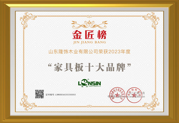 每一項榮譽的背后,既是一次強大品牌實力的展示,又是隆飾板材多年來對產(chǎn)品品質(zhì)的堅守,更是廣大消費者、板材行業(yè)、建材市場對于隆飾木業(yè)強大實力與品牌影響力的最好見證。