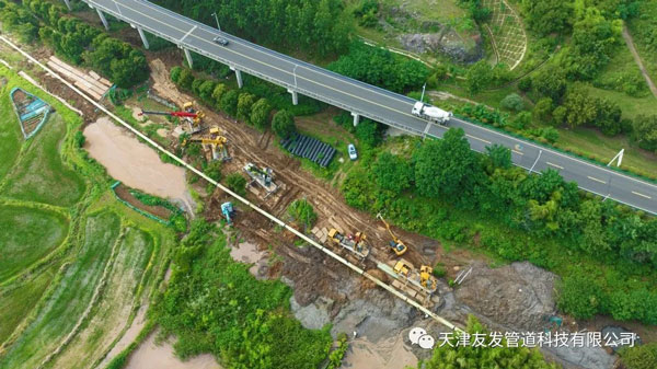 南京溧白路穿越東廬山工程是南京清泉城市建設(shè)工程股份有限公司的一項(xiàng)重點(diǎn)工程,東廬山山體內(nèi)都是巖石,十分堅(jiān)硬,施工難度大,對產(chǎn)品要求嚴(yán)格。天津友發(fā)管道科技有限公司新品光固化玻璃鋼防腐管強(qiáng)度高、硬度高、耐劃傷、耐磨砂,能夠延長管道服役壽命,滿足工程要求,穿越距離長度1公里。且光固化玻璃鋼防腐管具有施工靈活、難度低、時(shí)間短等特點(diǎn),不受天氣溫度和現(xiàn)場施工條件影響,大大減少安裝成本。