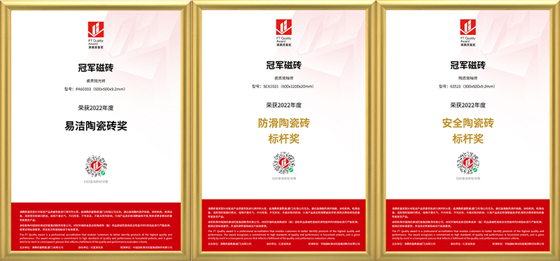 冠軍磁磚一直秉承“品質(zhì)為基礎(chǔ)·服務(wù)為依歸·創(chuàng)新為發(fā)展”的企業(yè)核心戰(zhàn)略,憑借口碑積累和過(guò)硬的品質(zhì),長(zhǎng)期以往深受消費(fèi)者的認(rèn)可與信賴(lài),堅(jiān)守半世紀(jì)功勛卓著。