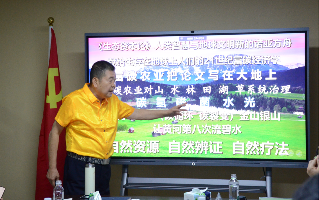 在交流會上,袁東來教授以《富碳農(nóng)業(yè)“碳”索未來》為題進(jìn)行專題授課,介紹了碳中和、富碳農(nóng)業(yè)及其發(fā)展創(chuàng)新理念等相關(guān)理論知識,對國際國內(nèi)相關(guān)實(shí)踐經(jīng)驗(yàn)進(jìn)行了講解,深入闡釋了碳中和與地區(qū)高質(zhì)量發(fā)展的關(guān)系并就富碳農(nóng)業(yè)的發(fā)展與展望、“雙碳”背景下農(nóng)業(yè)產(chǎn)業(yè)的綠色轉(zhuǎn)型等問題進(jìn)行了分析與解讀。集團(tuán)董事長黃慶明、集團(tuán)監(jiān)事長云恒寧、集團(tuán)顧問團(tuán)隊(duì)劉錦超教授、柏威廉教授、吳俁達(dá)教授及全體管理人員參加了此次交流。