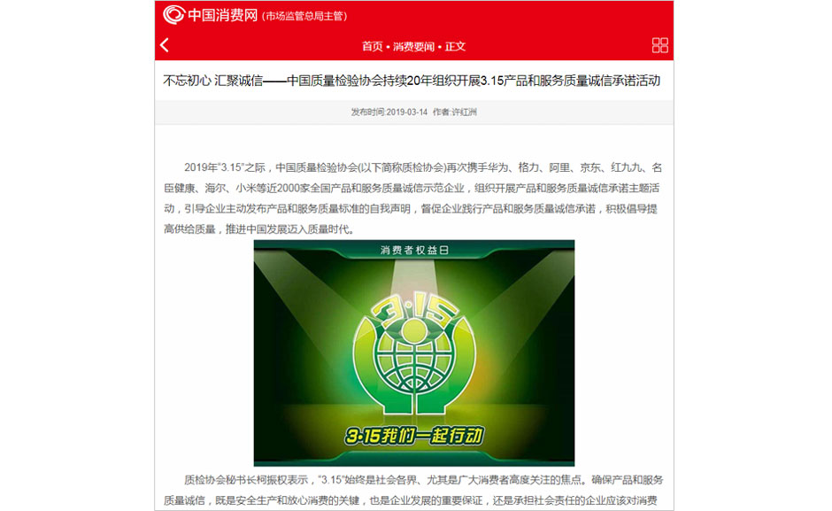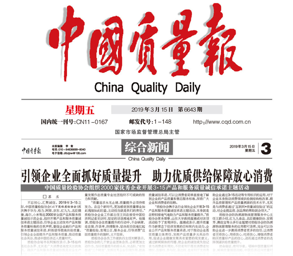 (備注:本新聞刊發(fā)于《中國(guó)質(zhì)量報(bào)》2019年3月15日刊第03版)