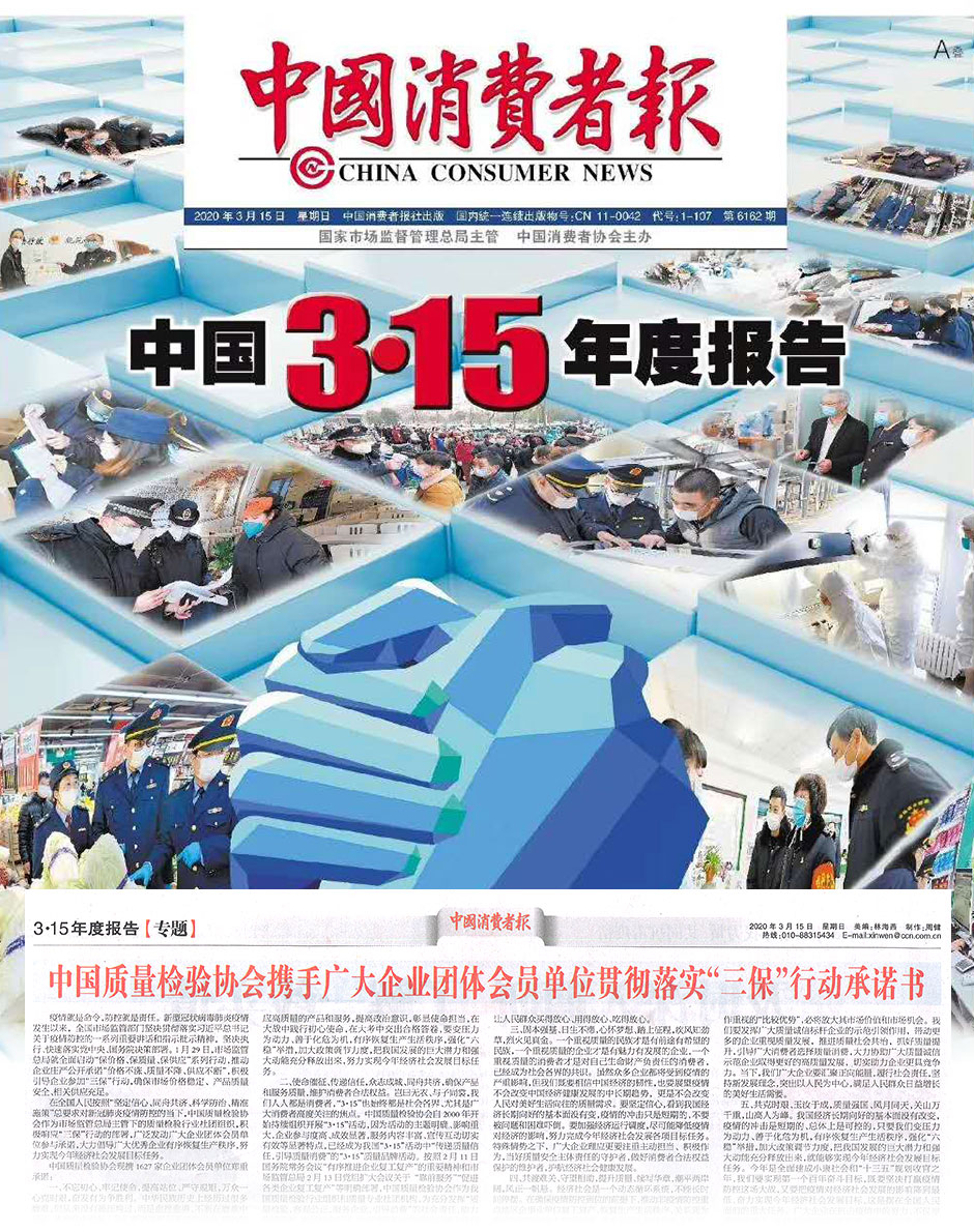 中國質(zhì)量報《不忘初心 勇毅擔(dān)當(dāng) 守望相助 傳遞信任——中國質(zhì)量檢驗協(xié)會攜手廣大會員企業(yè)響應(yīng)“三?!毙袆硬⒔M織開展2020年“3·15”產(chǎn)品和服務(wù)質(zhì)量誠信活動》