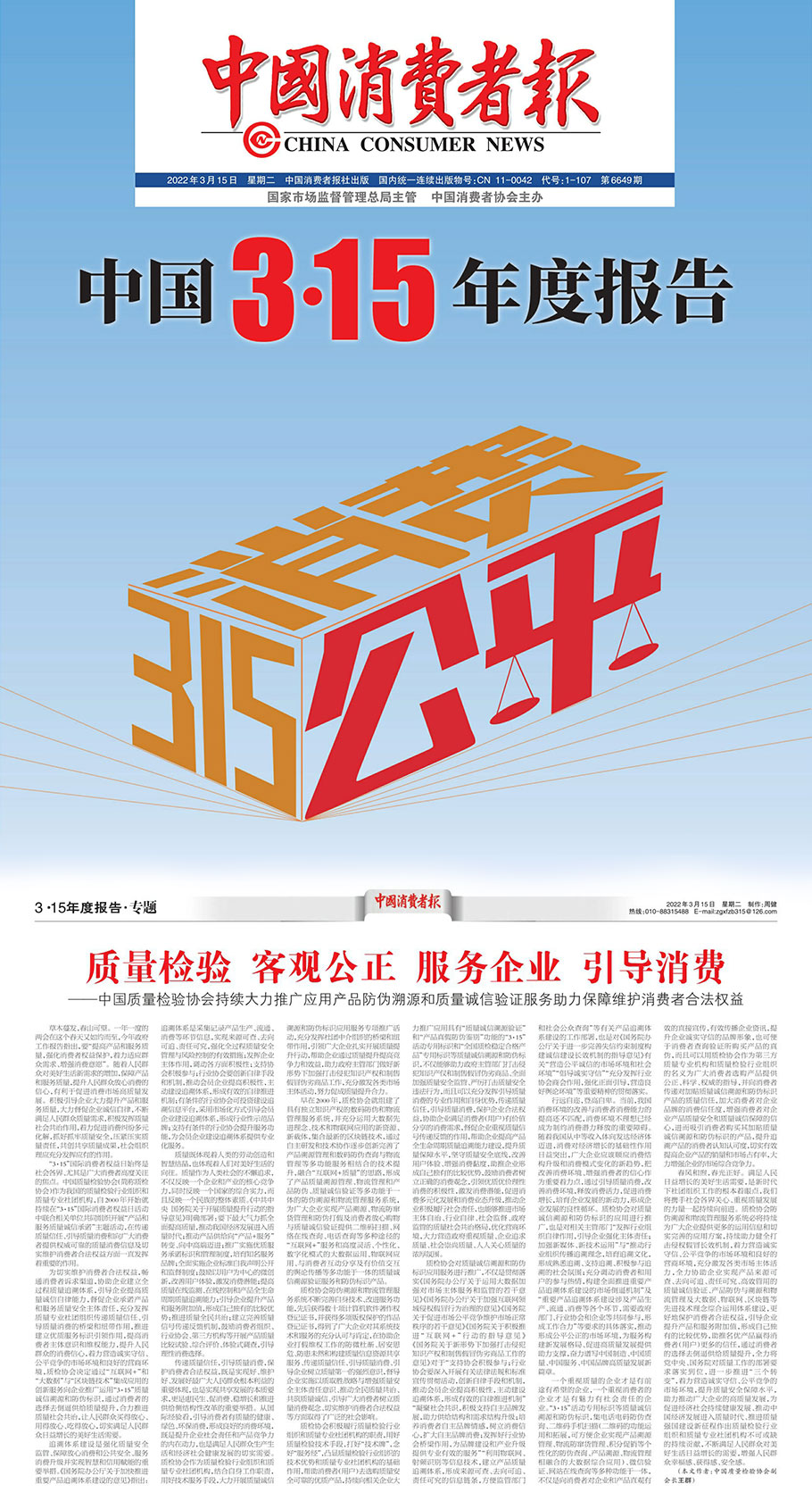 中國消費(fèi)者報(bào)(3月15日刊第4版):傳遞質(zhì)量信任 助力產(chǎn)品和服務(wù)質(zhì)量提升 引導(dǎo)質(zhì)量消費(fèi) 服務(wù)經(jīng)濟(jì)社會高質(zhì)量發(fā)展——中國質(zhì)量檢驗(yàn)協(xié)會組織開展2021年“3.15”國際消費(fèi)者權(quán)益日“產(chǎn)品和服務(wù)質(zhì)量誠信承諾”主題活動綜述