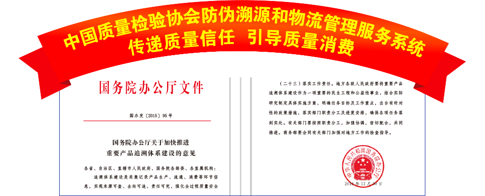 中國(guó)質(zhì)量檢驗(yàn)協(xié)會(huì)防偽溯源物流管理服務(wù)部作為中國(guó)質(zhì)量檢驗(yàn)協(xié)會(huì)防偽溯源和物流管理服務(wù)系統(tǒng)的工作機(jī)構(gòu),將切實(shí)為廣大企業(yè)提供更多的運(yùn)用信息和切實(shí)完善的應(yīng)用方案,支持企業(yè)實(shí)現(xiàn)產(chǎn)品來(lái)源可查、去向可追、責(zé)任可究、高效管用的質(zhì)量誠(chéng)信驗(yàn)證、產(chǎn)品防偽與溯源和物流管理及大數(shù)據(jù)、物聯(lián)網(wǎng)先進(jìn)理念綜合運(yùn)用體系建設(shè),助推名優(yōu)產(chǎn)品贏得消費(fèi)者(用戶)更多的質(zhì)量安全消費(fèi)信任,助力供給側(cè)結(jié)構(gòu)性改革,提高供給質(zhì)量,推動(dòng)中國(guó)經(jīng)濟(jì)發(fā)展進(jìn)入質(zhì)量時(shí)代,建設(shè)質(zhì)量強(qiáng)國(guó)。