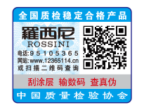 【“全國(guó)質(zhì)檢穩(wěn)定合格產(chǎn)品”專用標(biāo)識(shí)】具有專屬的知識(shí)產(chǎn)權(quán)(經(jīng)中國(guó)版權(quán)保護(hù)中心審核,國(guó)家版權(quán)局對(duì)“全國(guó)質(zhì)檢穩(wěn)定合格產(chǎn)品”專用標(biāo)識(shí)頒發(fā)了《作品登記證書(shū)》,登記號(hào):國(guó)作登字-2015-L-00188456),基本規(guī)格為5cm2,集電話電碼防偽查詢、二維碼在線掃描、微信驗(yàn)證等多種功能于一體,綜合運(yùn)用了紐索幣紋、微縮文字、熒光激發(fā)油墨等多種防偽技術(shù);專用標(biāo)識(shí)加貼在產(chǎn)品或包裝上,消費(fèi)者只需要用座機(jī)(手機(jī))電話撥打全國(guó)范圍內(nèi)都不需要加區(qū)號(hào)的特服號(hào)碼95105365或使用手機(jī)掃描二維碼或登陸網(wǎng)站(http://www.12365114.cn)就可直接查詢驗(yàn)證加貼專用標(biāo)識(shí)的產(chǎn)品為第三方國(guó)家質(zhì)量專業(yè)機(jī)構(gòu)客觀、公正證明的全國(guó)質(zhì)量檢驗(yàn)穩(wěn)定合格產(chǎn)品,形成企業(yè)自己獨(dú)有的比較優(yōu)勢(shì),助力企業(yè)通過(guò)“質(zhì)量檢驗(yàn)”的比較優(yōu)勢(shì)去贏得消費(fèi)者更多的信任。