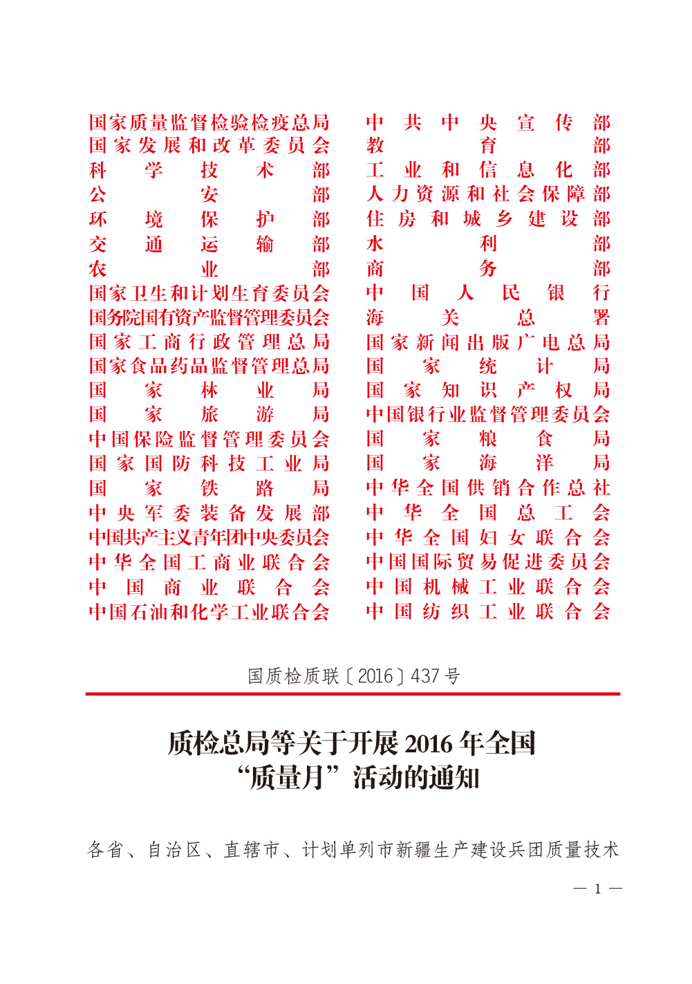 2016年8月15日,國家質(zhì)檢總局、中共中央宣傳部、國家發(fā)改委、科學(xué)技術(shù)部、工業(yè)和信息化部、公安部、農(nóng)業(yè)部、商務(wù)部、國務(wù)院國資委、國家工商總局、國家食藥監(jiān)總局、國家知識產(chǎn)權(quán)局、中國貿(mào)促會等42個單位(部門)聯(lián)合印發(fā)的《質(zhì)檢總局等關(guān)于開展2016年全國“質(zhì)量月”活動的通知》(國質(zhì)檢質(zhì)聯(lián)〔2016〕437號)就曾重點安排部署:中國質(zhì)量檢驗協(xié)會繼續(xù)組織開展“企業(yè)質(zhì)量誠信倡議”專題活動,組織開展質(zhì)量誠信溯源和防偽標(biāo)識應(yīng)用服務(wù)專項推廣活動,傳遞質(zhì)檢信任,引導(dǎo)質(zhì)量消費,助力“中國制造”品牌提升。