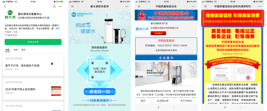 “防偽”因其本身的特性而屬于“信任型”產(chǎn)品和服務(wù),公信力是防偽產(chǎn)品和技術(shù)服務(wù)的生命線。中檢聯(lián)合質(zhì)量誠信驗證系統(tǒng)的各類防偽標(biāo)識、防偽溯源標(biāo)識、專用標(biāo)識有別于一般防偽標(biāo)識或防偽溯源產(chǎn)品,被廣泛認(rèn)可為產(chǎn)品質(zhì)量穩(wěn)定合格的“體檢證”、產(chǎn)品質(zhì)量安全可靠的“信用證”、產(chǎn)品和服務(wù)有保障的“質(zhì)量標(biāo)識”。中檢聯(lián)合質(zhì)量誠信驗證系統(tǒng)可為企業(yè)提供產(chǎn)品防偽查詢、產(chǎn)品質(zhì)量溯源管理、防竄貨管理、質(zhì)量誠信驗證、倉儲管理、會員管理、移動營銷等多功能于一體的應(yīng)用服務(wù)。