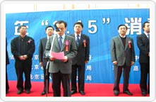 國家質(zhì)檢總局組織的2005年3·15咨詢活動 現(xiàn)場掠影(圖為:北京市人民政府陸昊副市長 在活動開幕式上講話) |