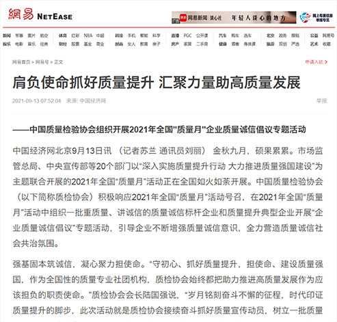 搜狐網(wǎng):肩負(fù)使命抓好質(zhì)量提升 匯聚力量助高質(zhì)量發(fā)展——中國(guó)質(zhì)量檢驗(yàn)協(xié)會(huì)組織開(kāi)展2021年全國(guó)“質(zhì)量月”企業(yè)質(zhì)量誠(chéng)信倡議專(zhuān)題活動(dòng)