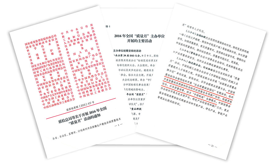 提高供給質量是供給側結構性改革的主攻方向,全面提高產品和服務質量是提升供給體系的中心任務。為了堅持以質量第一為價值導向,下最大氣力抓全面提高質量,推動我國經濟發(fā)展進入質量時代,國家質檢總局、中共中央宣傳部、國家發(fā)改委、工業(yè)和信息化部、中央軍委裝備發(fā)展部、中華全國工商業(yè)聯合會等47個2017年全國“質量月”活動主辦單位在《2017年全國“質量月”活動主辦單位開展的主要活動》中部署安排中國質量檢驗協(xié)會:繼續(xù)組織開展“企業(yè)質量誠信倡議”專題活動,開展質量誠信溯源和防偽標識應用服務專項推廣活動。同時,2017年全國“質量月”活動還將中國質量檢驗協(xié)會工作核心價值“傳遞質檢信任 引導質量消費”及2017年全國“質量月”企業(yè)質量誠信倡議專題活動的主題“弘揚工匠精神,堅持質量第一”列為《2017年全國“質量月”活動口號》。